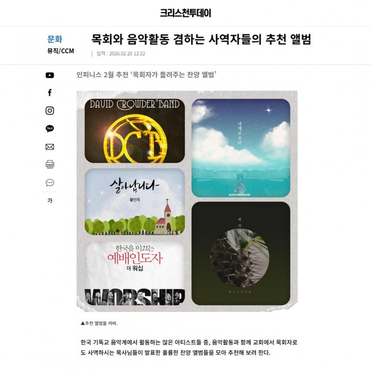 [기획기사] 목회와 음악활동 겸하는 사역자들의 추천 앨범(크리스천투데이)